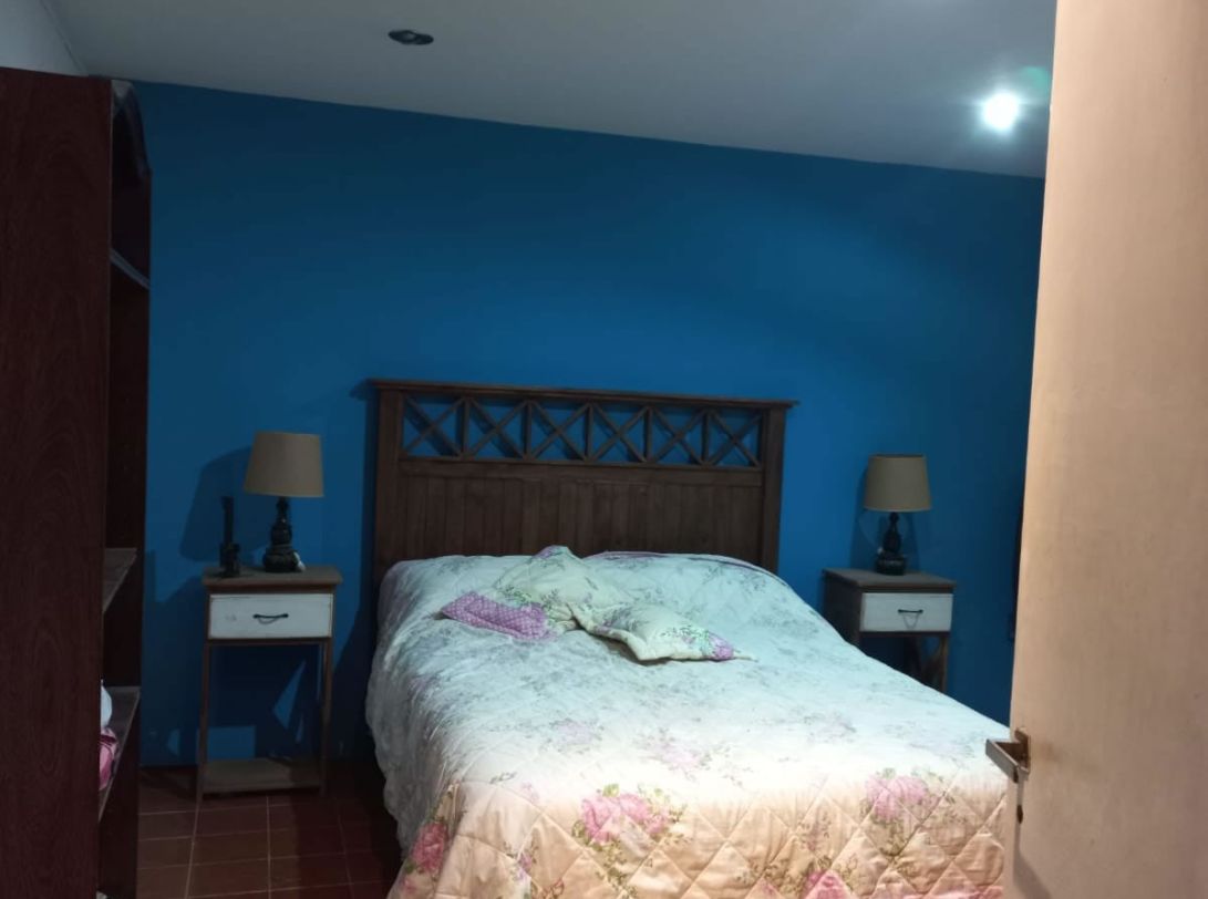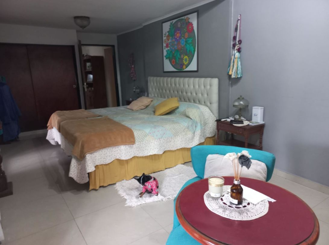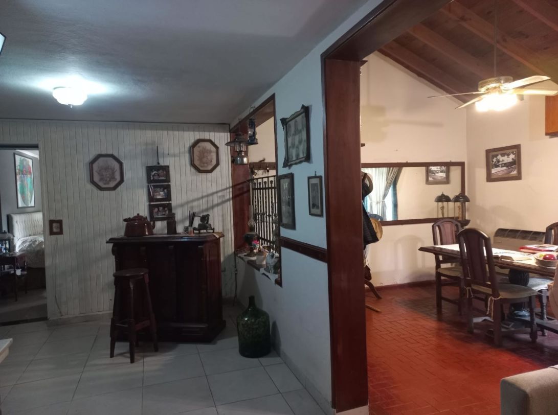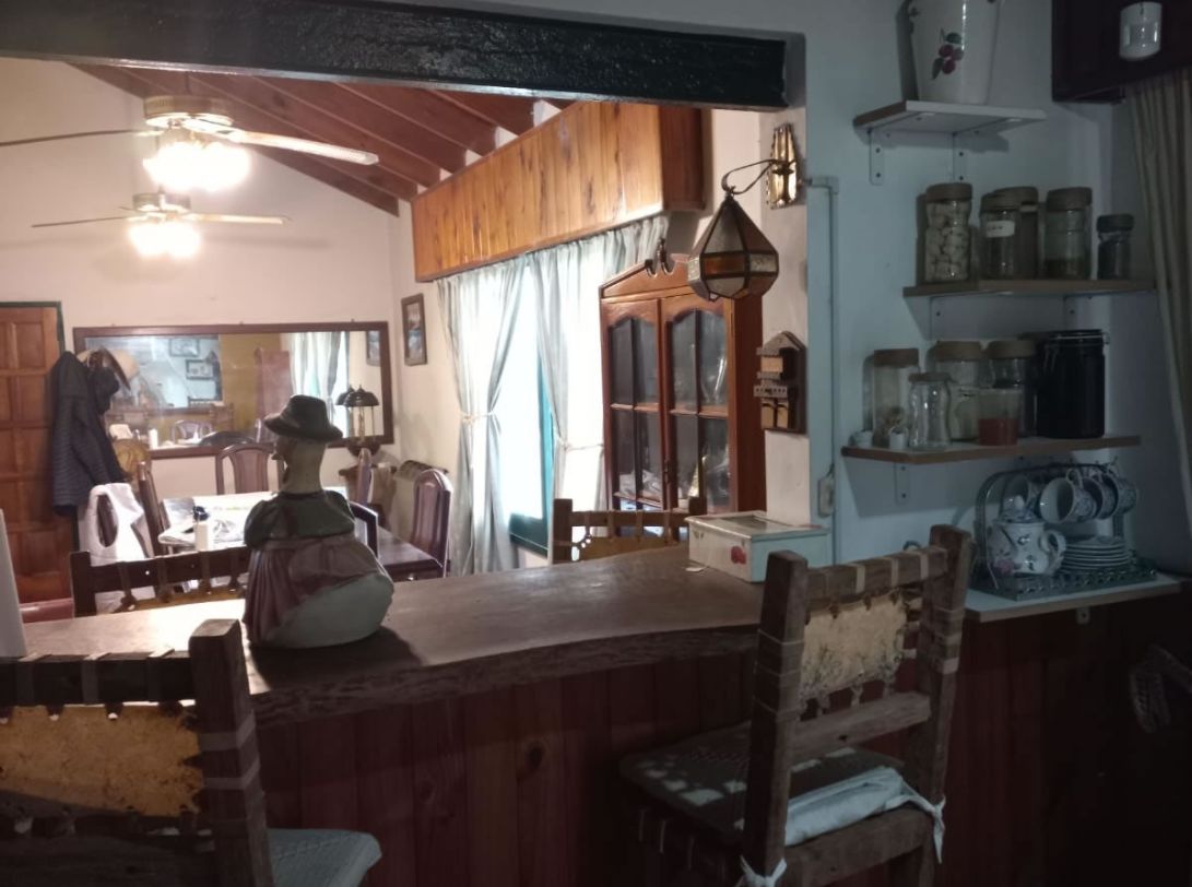 3 dormitorios, 2 en suite, 1 con vestidor, 3 baños. living, amplio comedor con hogar, cocina completa con muebles, barra desayunador, altillo para guardado de mercadería, galería.
