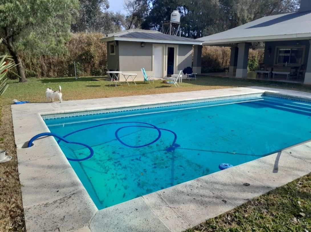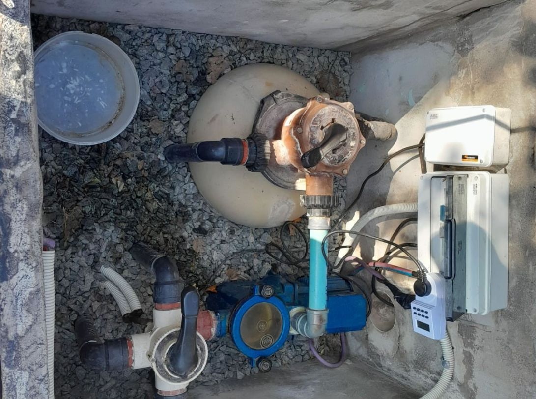 1 piscina de hormigón con gabinete de bomba y filtro